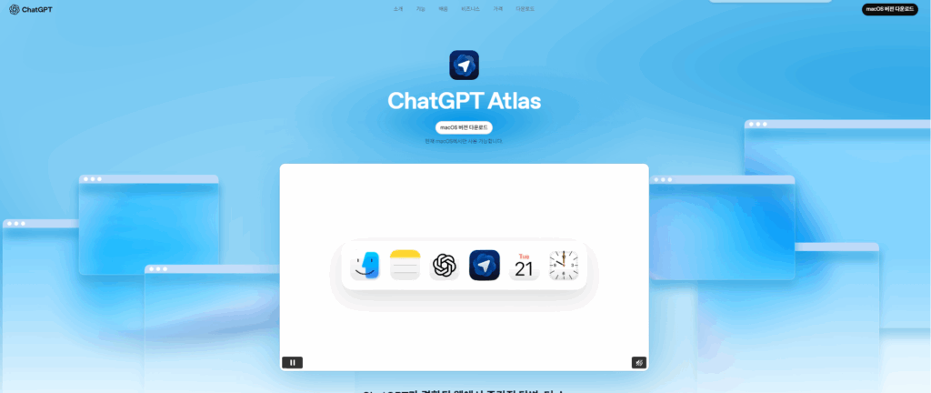 위 이미지는 OPEN AI 사이트에서 ChatGPT Atlas 다운로드 및 설명란을 스크랩샷한 이미지 입니다.